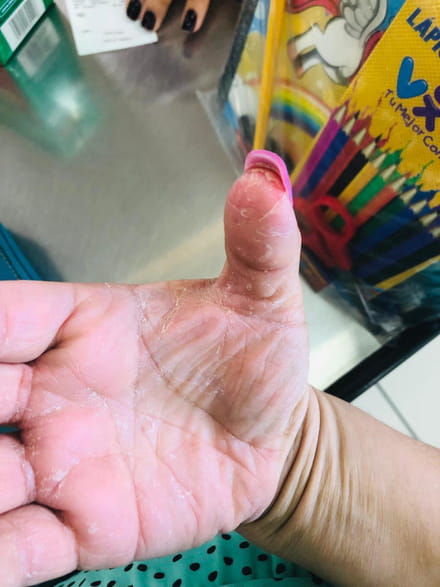 Te cuento desde niña soy así, no utilizo ningún tipo de jabón, menos cloro, ningún tipo de químico (no lavo platos, ropa, casa nada) no hago nada que tenga que ver con quimicos. es mas lo único que uso para hidratar mis manos y es lo que mas me ayuda es vaselina simpl.