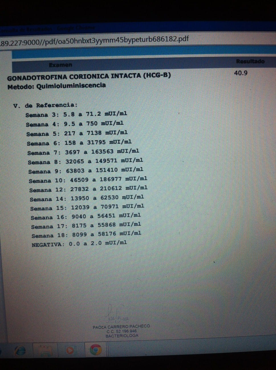 Me sale en la prueba beta 40.9 cuantas semanas tengo